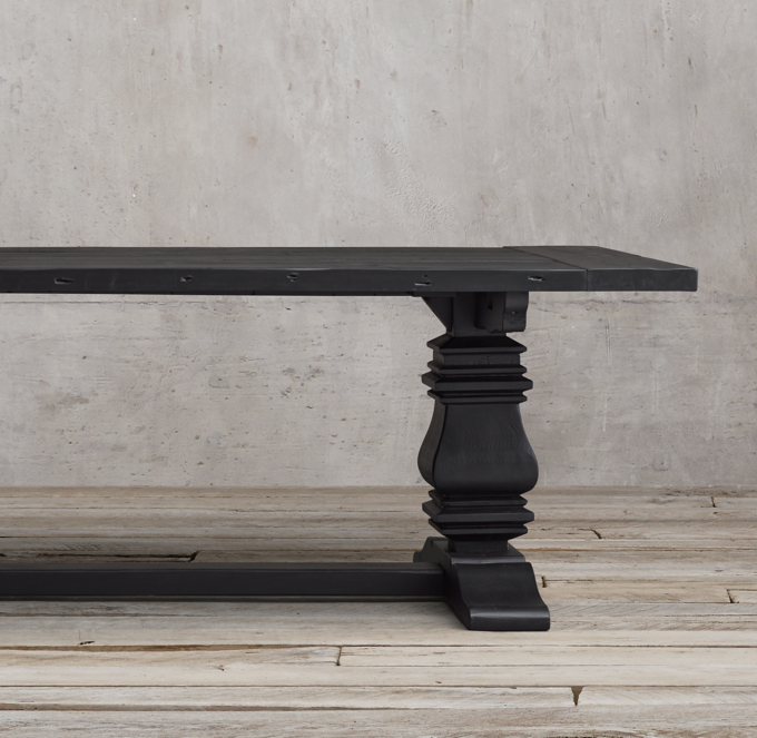 Waxed table and furniture care instructions use coasters or placemats to help prevent marks or stains. Restoration hardware trestle salvaged wood extension dining table the model is based on the original manufacturer dimensions. See the dimensions sheet for the measurements that correspond with the letters below. Matching dining chairs, sideboard, hutch available.
